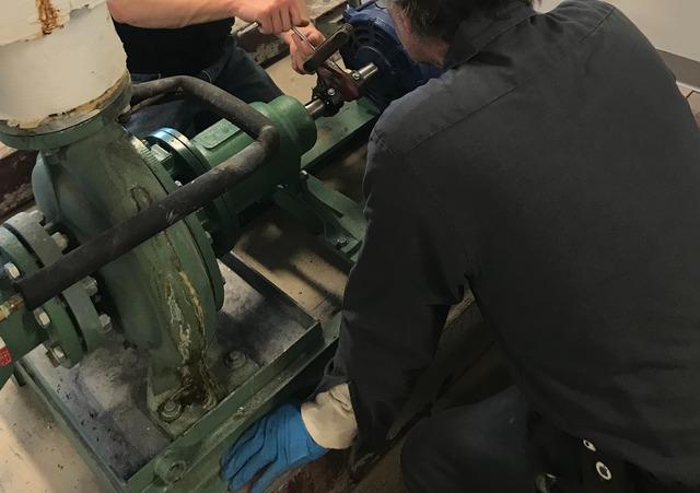 Prepping to remove a rotating assembly for a cooling circulator pump for a local college. The unit will be fitted with new internal components and put back into service at a fraction of the cost of replacing it.